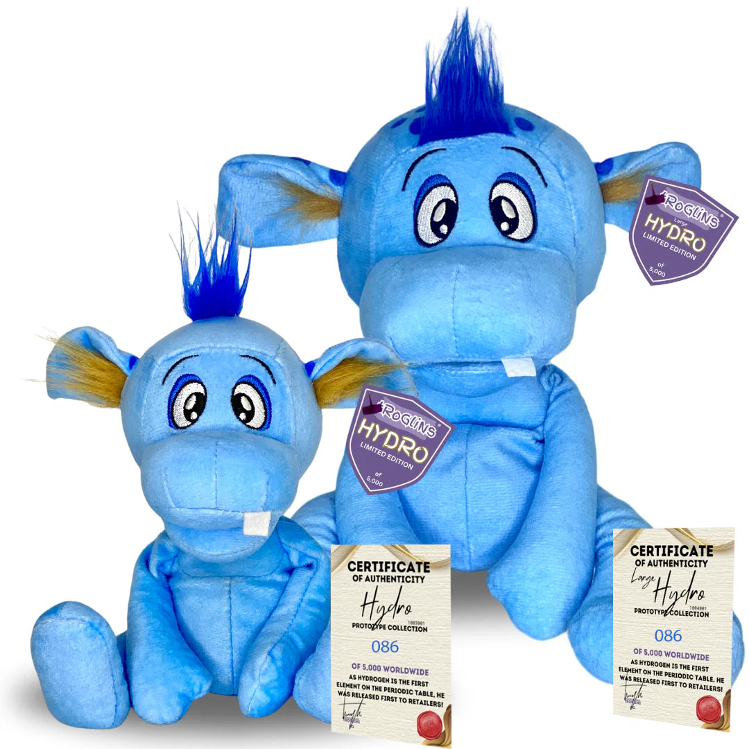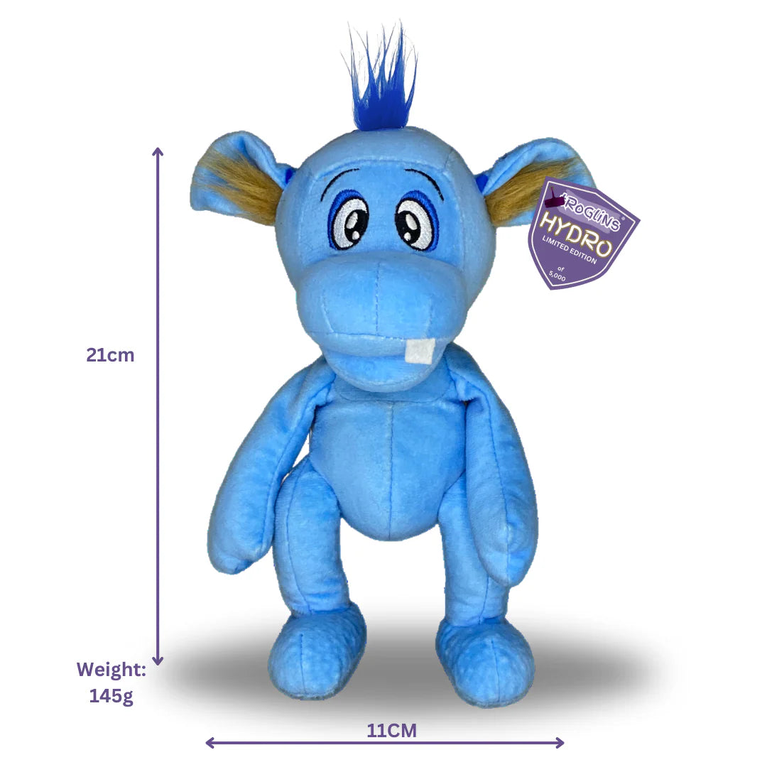 Hydro (Regular) stands at 21cm (13.5cm sitting) and weighs approx 145g, which is 50% heavier than most plush toys the same size.