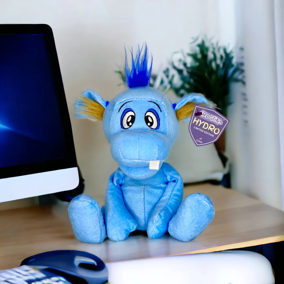 With beautifully embroidered eyes and a goofy tooth, Hydro will make you smile just by making eye contact.