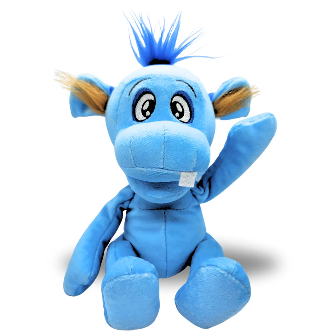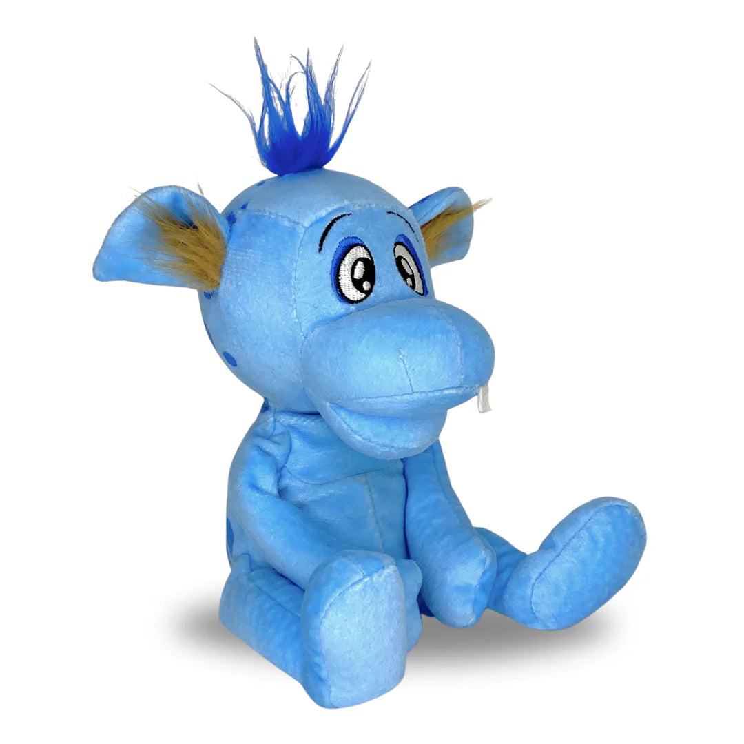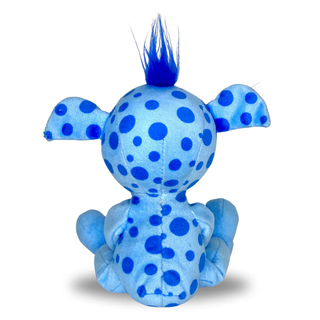 Made from a vibrant plush fabric with royal blue features, this little character will stand out in any plush collection.