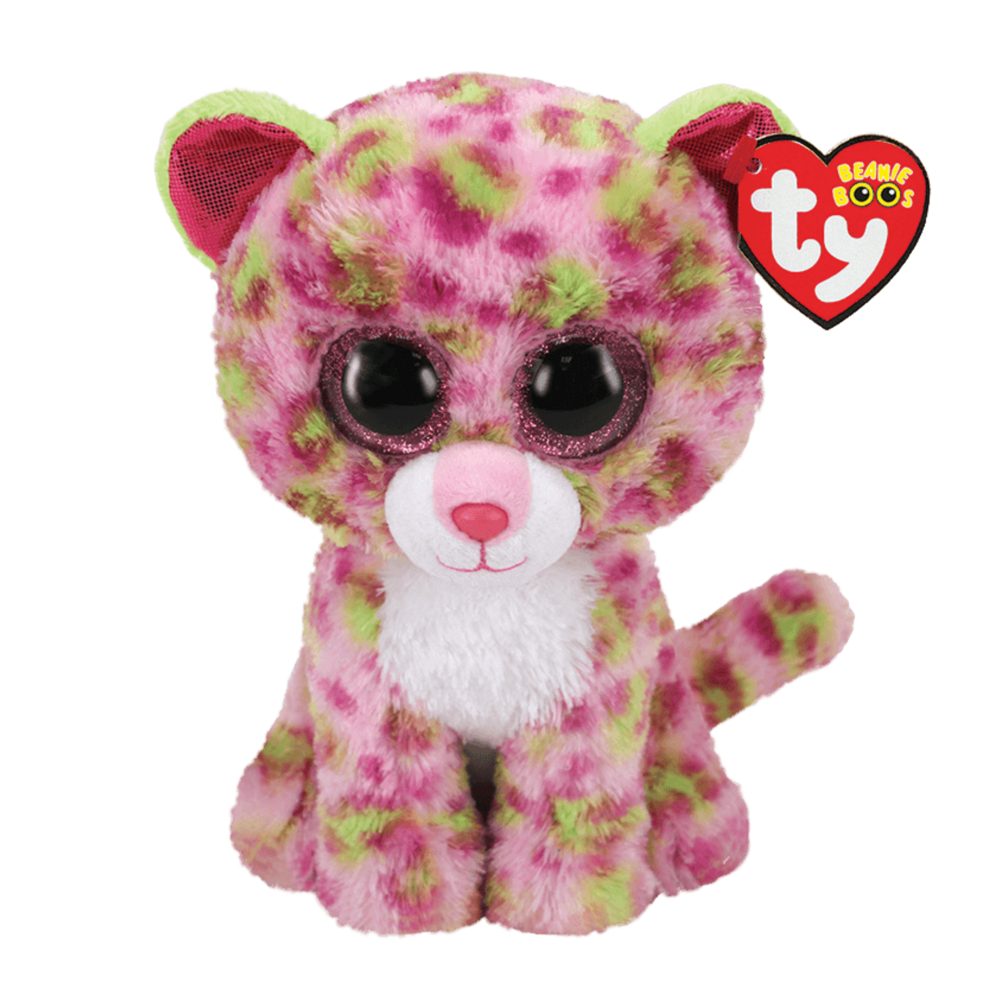 I’m Lainey, a pink-and-green leopard with glittering sparkle eyes that catch the light. When I find a tasty treat, I love to climb high into the trees to keep it safe. Soft, cuddly, and always ready for fun, I can’t wait to play with you and let our adventures unfold!